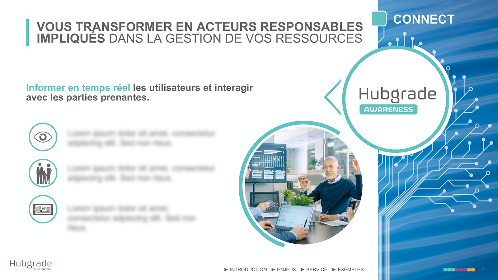 • Définir comment parler d’Hubgrade en interne et faire adhérer les équipes. Réaliser les supports de présentation pour le Top Management de Veolia.